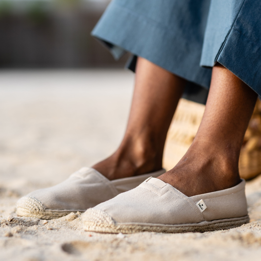 Your must-have classic summer shoe. Handmade from breathable cotton with naturally cooling jute soles. Perfect for tropical climes. Available up to size EU 42.Â