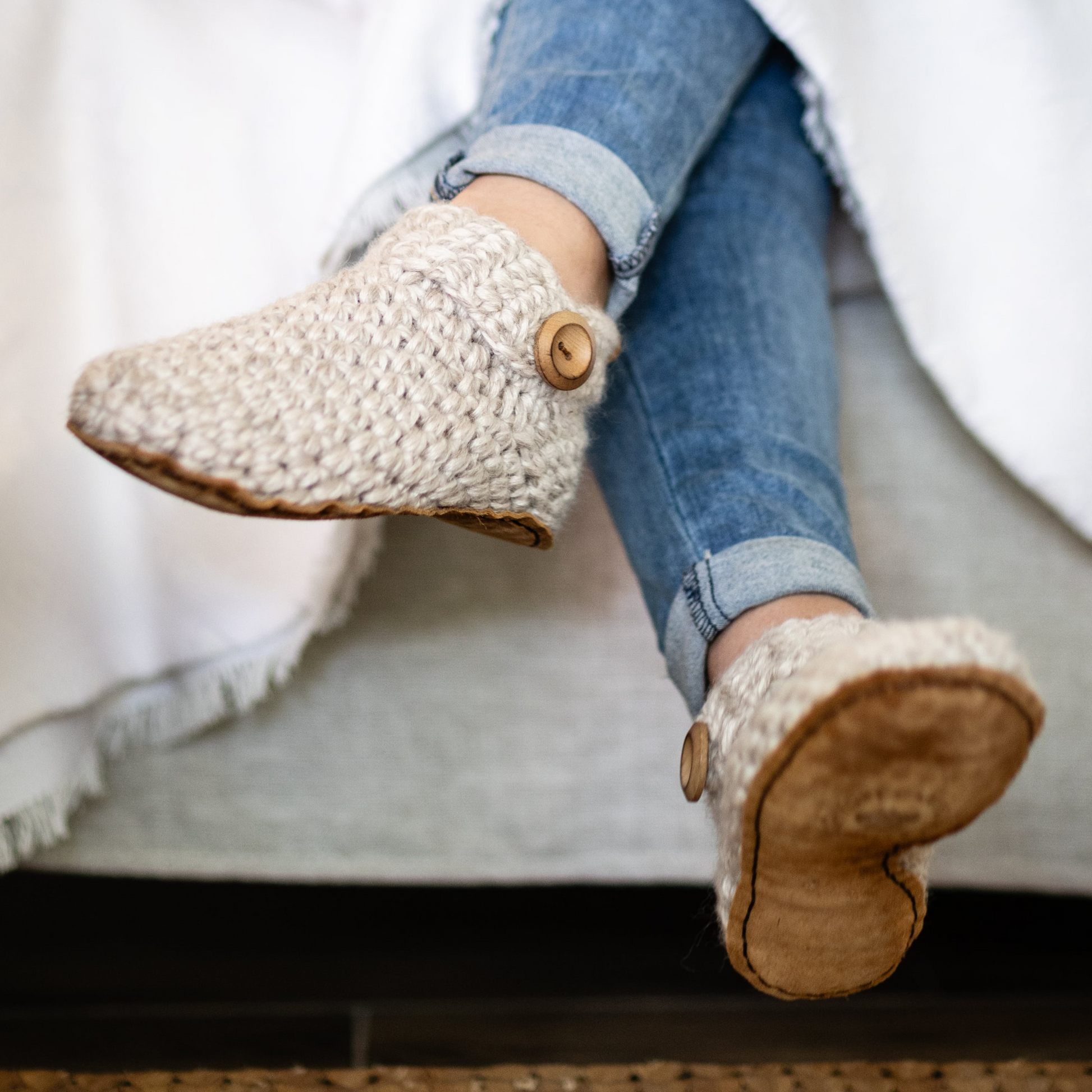 Handmade wool blend slippers for men and women. Crafted from four strands of quality yarn.