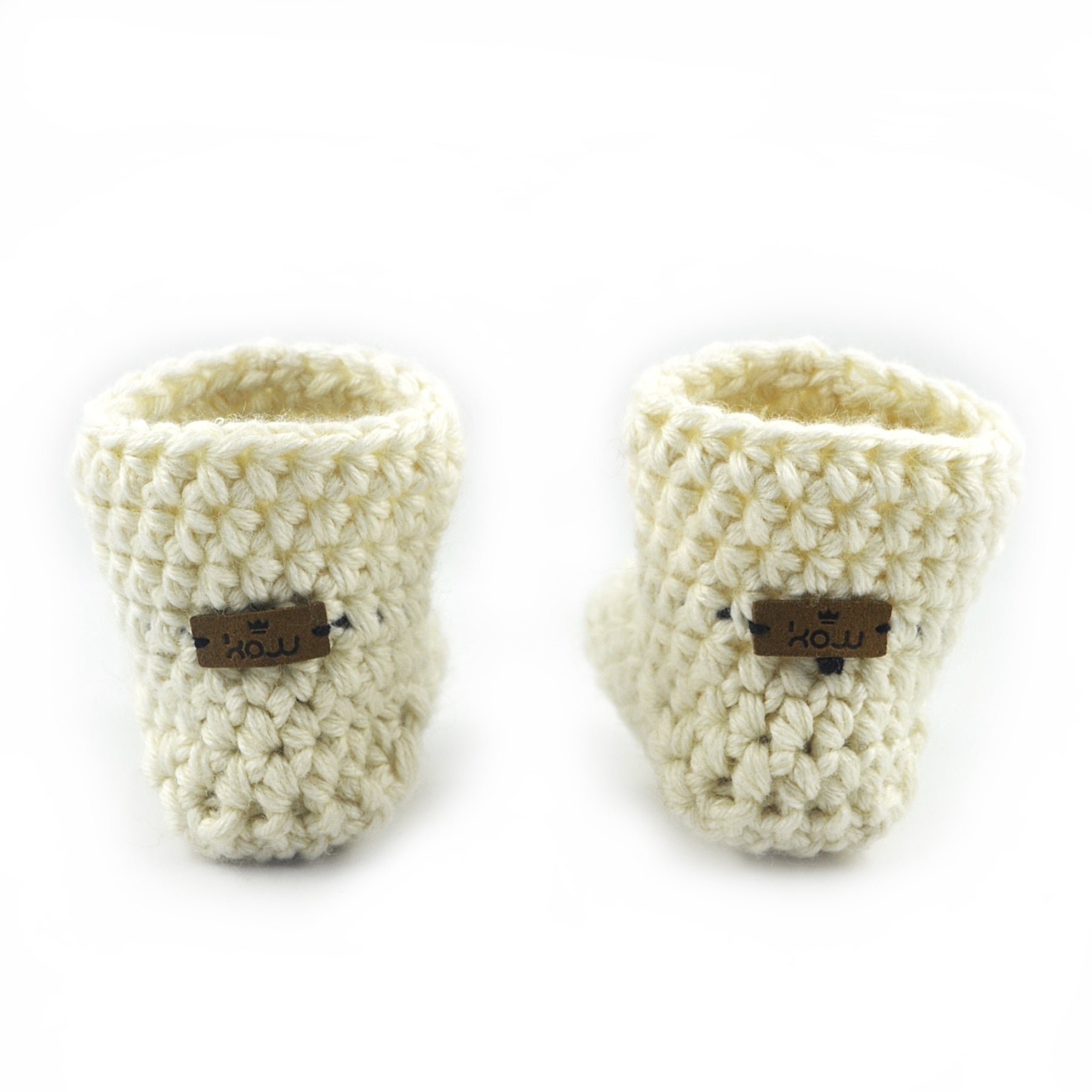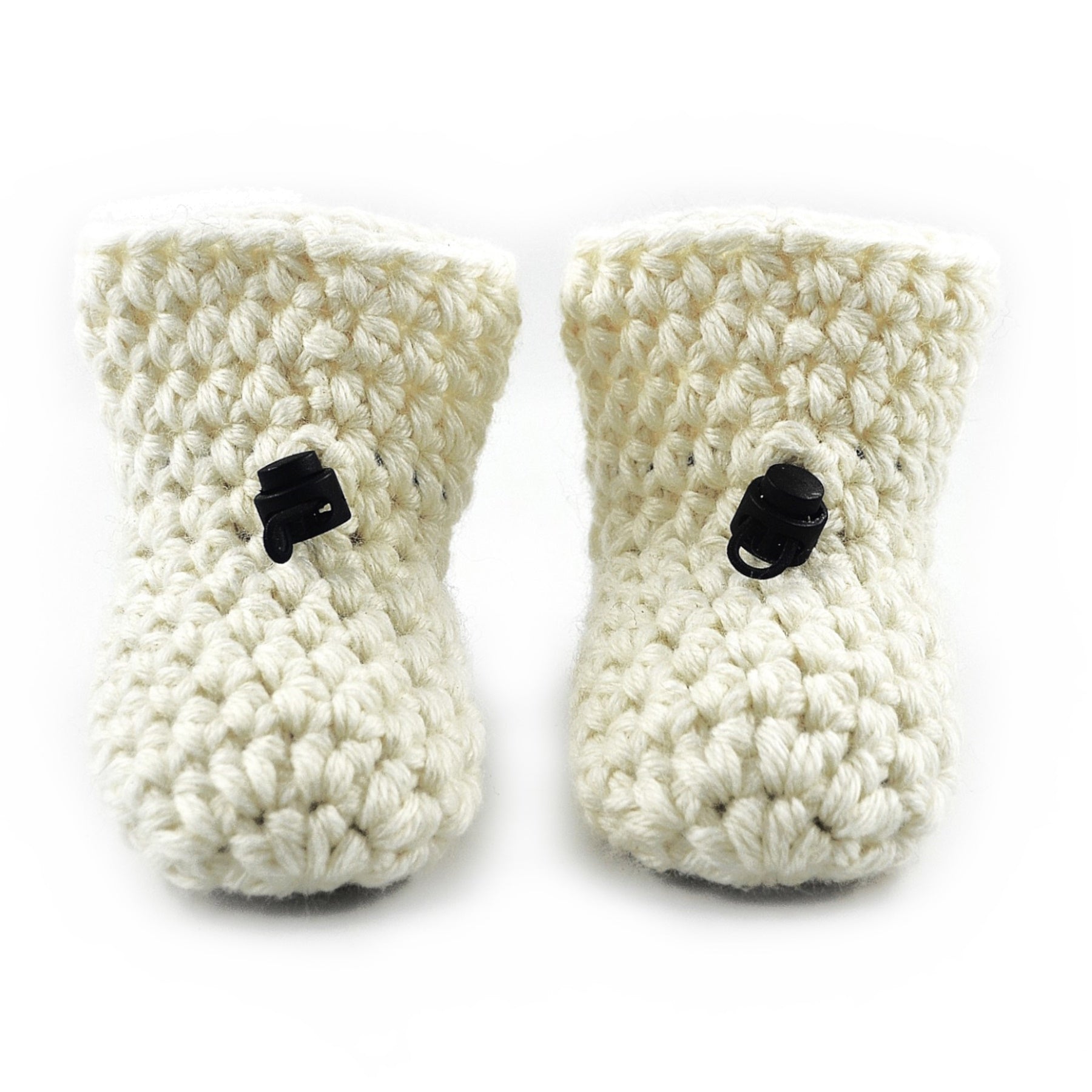 Perfect for the patter of tiny feet. Comfy baby booties made from a blend of natural sheep wool and bamboo yarn. Offer a snug warm stay-on fit. Slip on and off with ease. They’re itch-free and washable too.